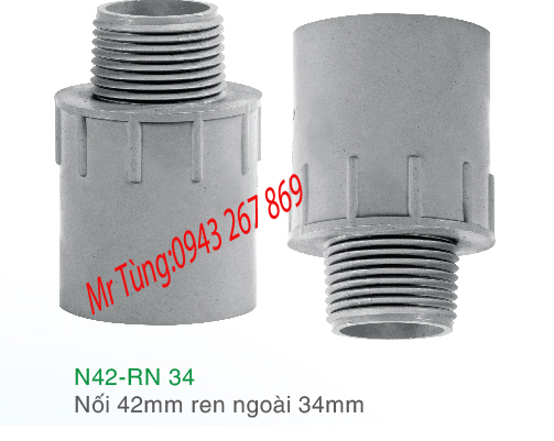 Nối 42mm ren ngoài 34mm PVC,Bảo Bình N42-RN34